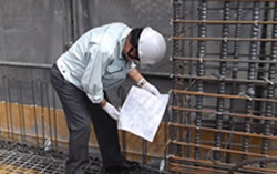 施工品質管理におきまして、一番重要なPOINTは建物が完成した後、目に見えない構造体が現行の“新耐震基準”で設計された設計図で、図面通り施工されているかが問題です。特に、柱、大梁、耐力壁などの重要な鉄筋が一本でも不足筋はないか、各々の鉄筋の強度が生かされる状態に配筋されているかなど、配筋検査が非常に大切になります。